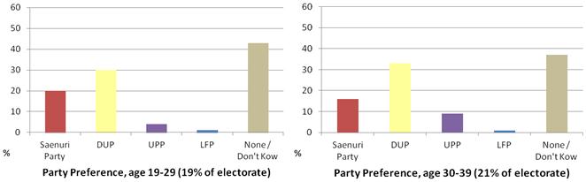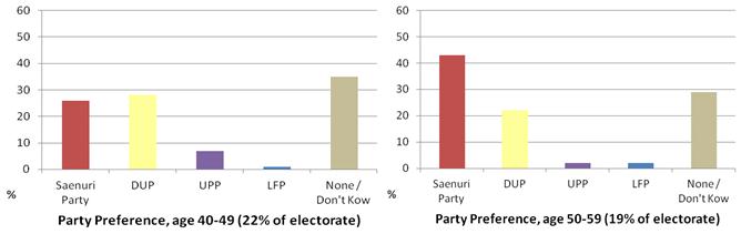 The main longer-term worry facing the party is demographic. As in past elections—particularly of Roh Moo Hyun— recent polling data (in Korean) shows a marked difference in preferences between the younger and older voters. While those who are in their 50s and above (about 40% of the entire electorate) show a strong preference over the Saenuri Party, the DUP seems to do much better in terms of the remaining younger South Korean voters. This is why the opposition was hoping for a higher turnout.