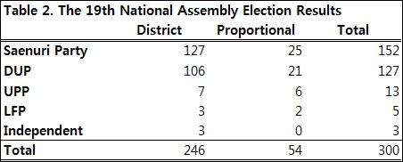 The DUP had a lot of ground to make up to get to a majority, and its desire to do so led to form a strategic alliance with the UPP. Such agreements are tough to forge because they require parties to forego fielding candidates in districts where both parties are active. Out of 246 electoral districts, the UPP convinced the DUP not to field candidates or won joint primaries in 34 constituencies. In return, the UPP agreed not to run against the DUP in 60 constituencies nationwide. The alliance may not have led to a majority but it clearly had the effect of avoiding the dilution of the left vote. The issue is whether the alliance tarnished the DUP’s image with centrist voters and conversely whether the UPP’s compromises sit well with its more leftist base. Will it hold? Examples abound of the two-edge sword of the alliance. My colleague Marc Noland has already ranted about the National Assembly shenanigans on the KORUS and the issues involved in the DUP’s proposed renegotiation; the UPP wants to scrap the KORUS altogether.