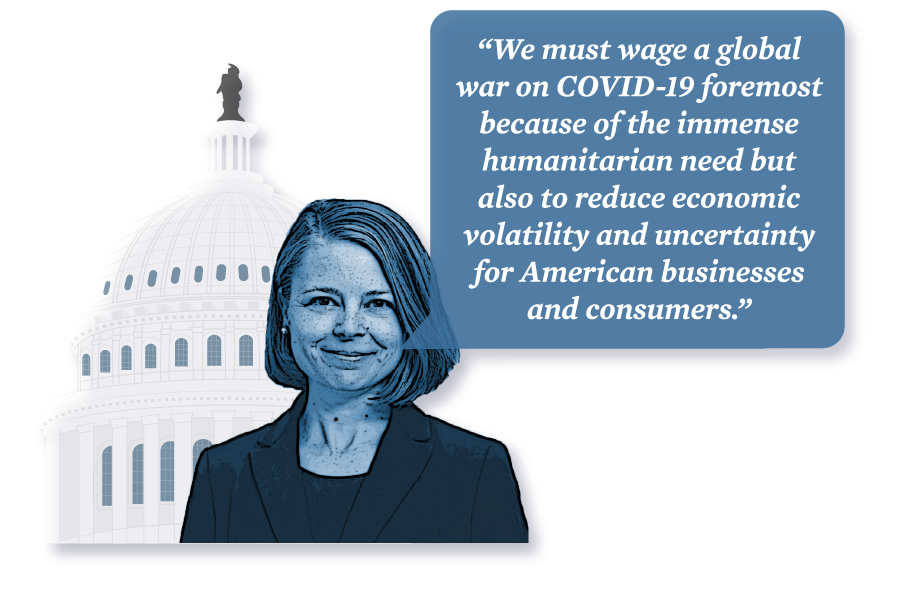 - Katheryn (Kadee) Russ testified to the US Congress that accelerating global vaccination efforts would save lives and prevent new waves of infections from hitting the US workforce, disrupting global supply chains, and driving up costs.
