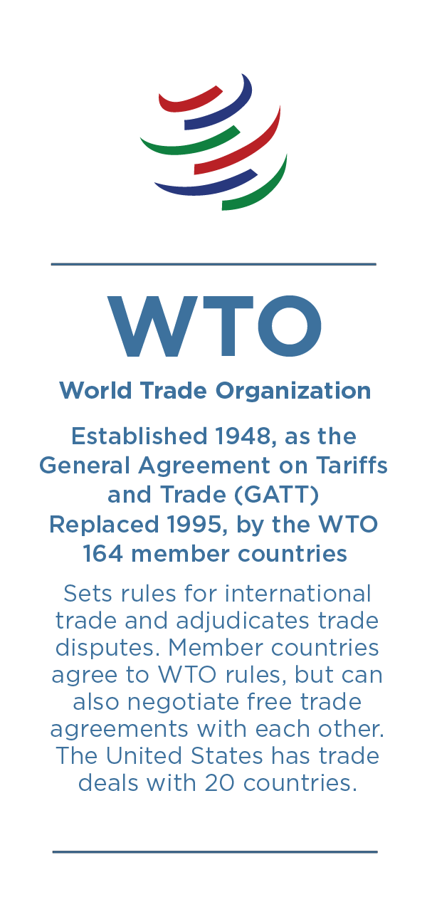 After World War II, the United States helped build a global economic order governed by mutually accepted rules and overseen by multilateral institutions. The idea was to create a better world with countries seeking to cooperate with one another to promote prosperity and peace. Free trade and the rule of law were mainstays of the system, helping to prevent most economic disputes from escalating into larger conflicts. The institutions established include: